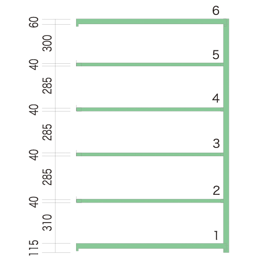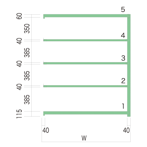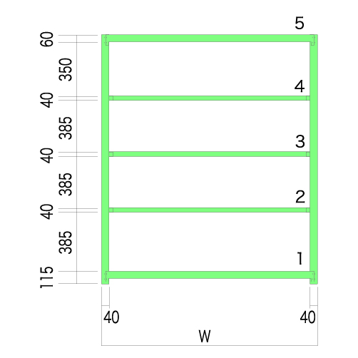 横幅900・1500・1200・1800mm、奥行き300・450・600・724mm、段数5・6段のバリエーションをご用意しております。棚は25mm単位で上で移動が可能。様々な物品の保管に最適です。
